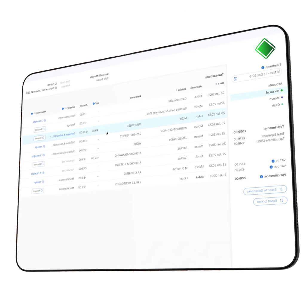 If you haven’t prepared a VAT Return, we’ve got you covered. Link your bank account and Submit VAT will automatically categorize your transactions into VAT groups and calculate the VAT from your receipts.